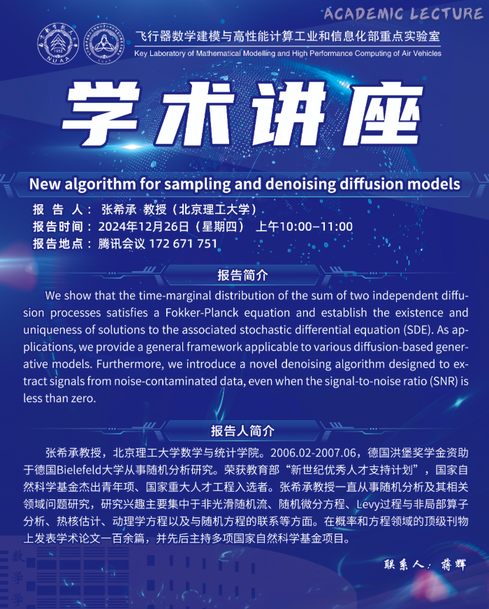 报告题目:New algorithm for sampling and denoising diffusion models