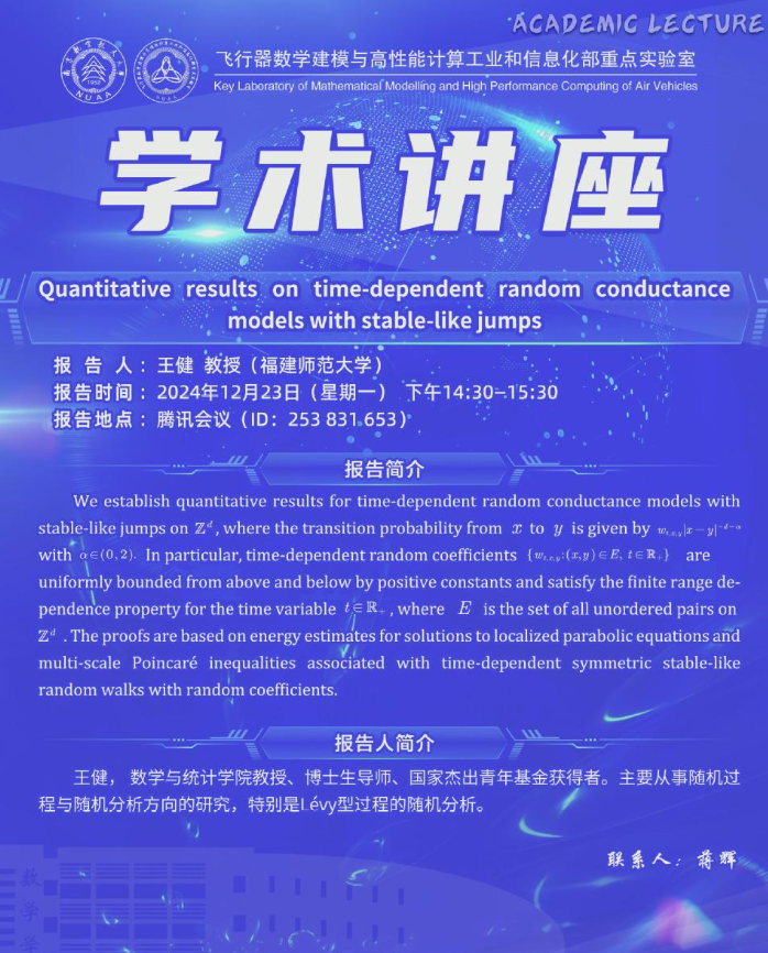 报告题目:Quantitative results on time-dependent random conductance model with stable-like jumps