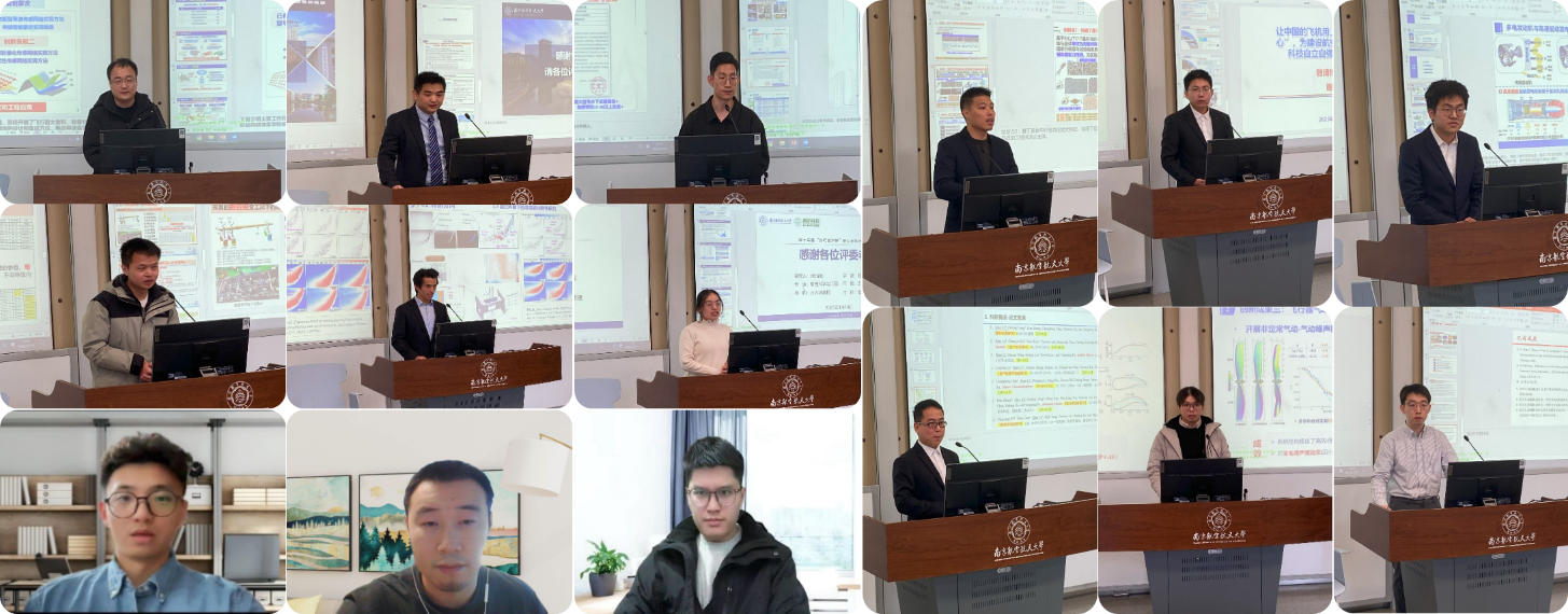 答辩会上,15位候选人从个人学术成果、科研项目、国际化交流和社会活动等方面讲述了科研与成长经历,亮点十足,成果丰硕,在创新性、实践应用性和影响力等方面都展示了南航研究生的特色和水平。其中汪玉同学针对飞行器结构健康监测智能蒙皮大面积、轻量化、一体化、高可靠实现难题,通过智能蒙皮导波传感网络的前沿科学问题研究和关键技术突破,系统提出了传感网络轻量化、高可靠、长寿命设计集成方法和新型柔性传感-监测网络系统一体化实现方法,推动了智能蒙皮理论研究和工程应用;陈旭同学围绕多电发动机高速电励磁双凸极电机的起动控制技术开展研究,突破了低速低转矩脉动控制、中高速高性能相电流控制和高速弱磁控制等关键技术,全面提升了宽速域内电励磁双凸极电机的起动转矩性能;许铁柱同学面向飞行器及其机载设备的超低温高功率特种化学电源需求,创新设计了多种快速储释电极材料和抗极寒富质子电解液,研制了兼具高功率-能量密度和超低温特性(≤−80 ℃)的变革性储能器件。