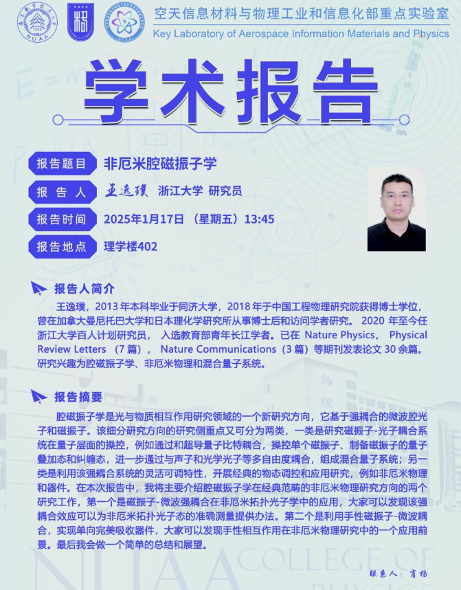 报告人: 王逸璞 浙江大学 研究员