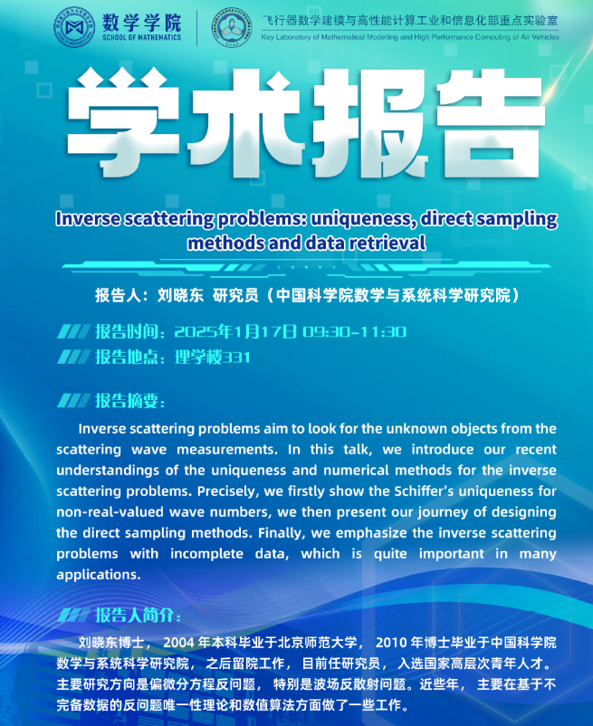 报告题目:Inverse scattering problems: uniqueness,direct sampling methods and data retrieval