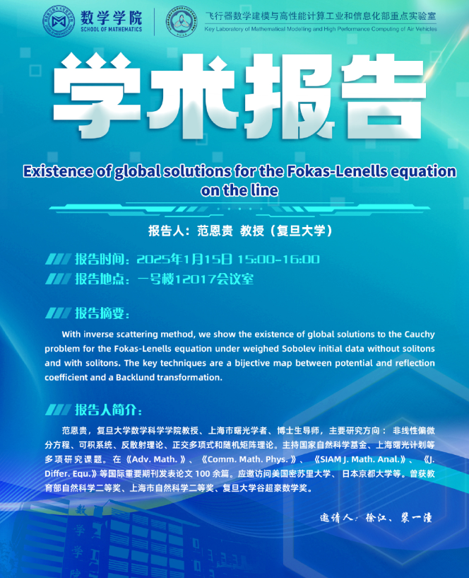 报告题目:Existance of global solutions for the Fokas-Lenells equation on the line