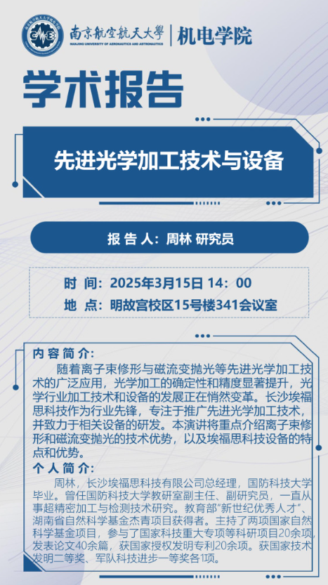 报告题目:先进光学加工与设备