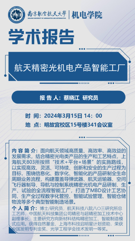 报告题目:航空精密光机电产品智能工厂