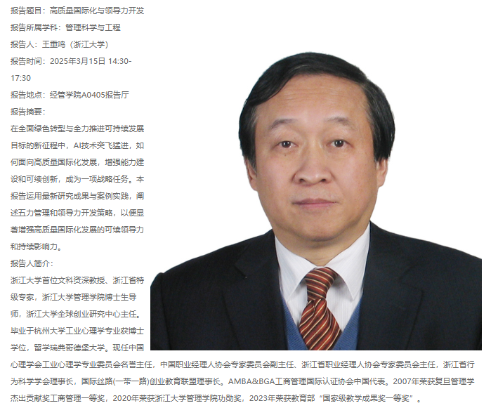 报告人: 王重鸣(浙江大学)