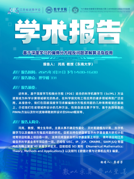 报告题目:基于深度学习的偏微分方程反问题求解算法及应用