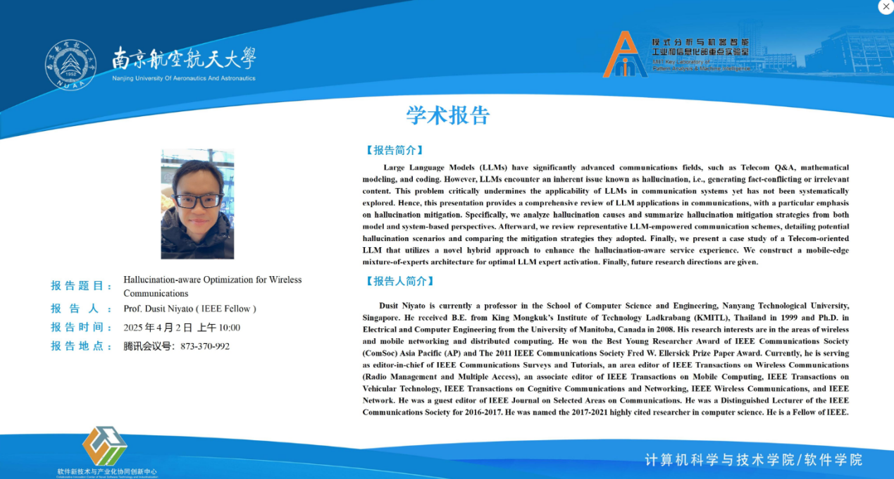 报告人: Prof.Dusit Niyato(IEEE Fellow)