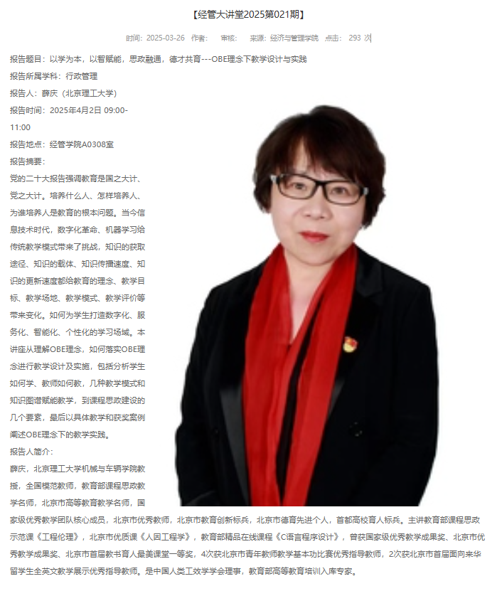 报告题目:以学为本,以智赋能,思政融通,德才共育---OBE理念下教学设计与实践