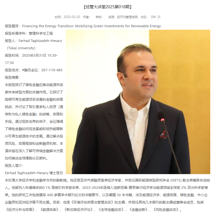 报告题目:Financing the Energy Transition: Mobilizing Green Investments for Renewable Energy