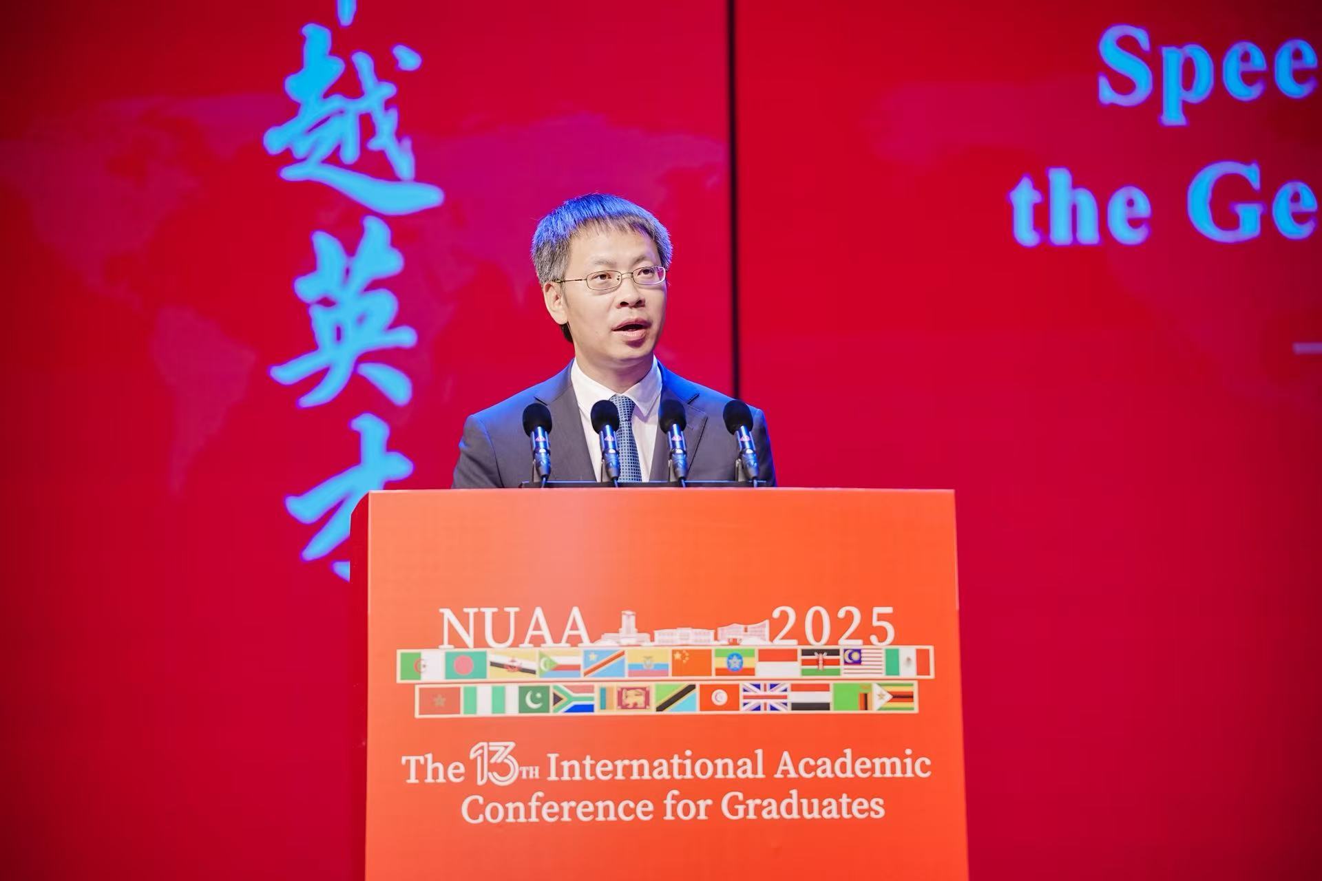 11月3日-4日,我校第十三届研究生国际学术会议顺利召开。会议由研究生院/党委研究生工作部、国际化部、校科协联合主办,包含开幕式暨主论坛、分论坛、闭幕式暨颁奖典礼三部分。11月3日上午,大会开幕式在将军路校区艺术中心小剧场举行。南京航空航天大学校长助理潘时龙,研究生院院长陈兵、党委研究生工作部部长宋凯、科学技术协会秘书长冯绍红,党委宣传部、校团委、国际化部、研究生院等相关部处负责同志以及各学院相关领导和嘉宾出席开幕式。开幕式由研究生院副院长刘向雷主持。