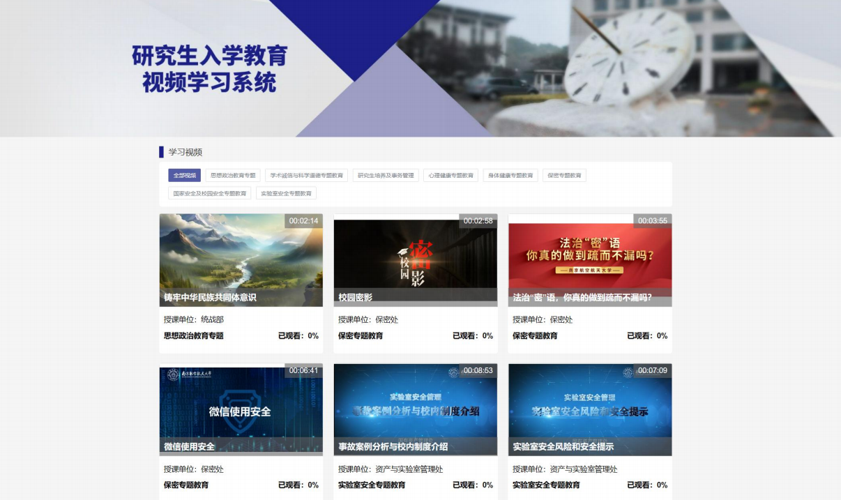 在研究生新生入校前,研究生院/研工部率先打通“云端”教育通道,前置认知启蒙与情感连接。一方面,开展研究生新生辅导员专项岗前培训,统筹部署迎新工作,搭建线上线下联动交流平台,实现与新生的全覆盖对接;另一方面,联动多部门协同发力,迭代升级形成覆盖思想引领、学术规范、身心健康、安全防护等专题的“8+N”微课矩阵。依托线上平台开展研究生新生“暑期零年级”特色课程,以“视频导学+在线测评”提升前置入学教育实效。