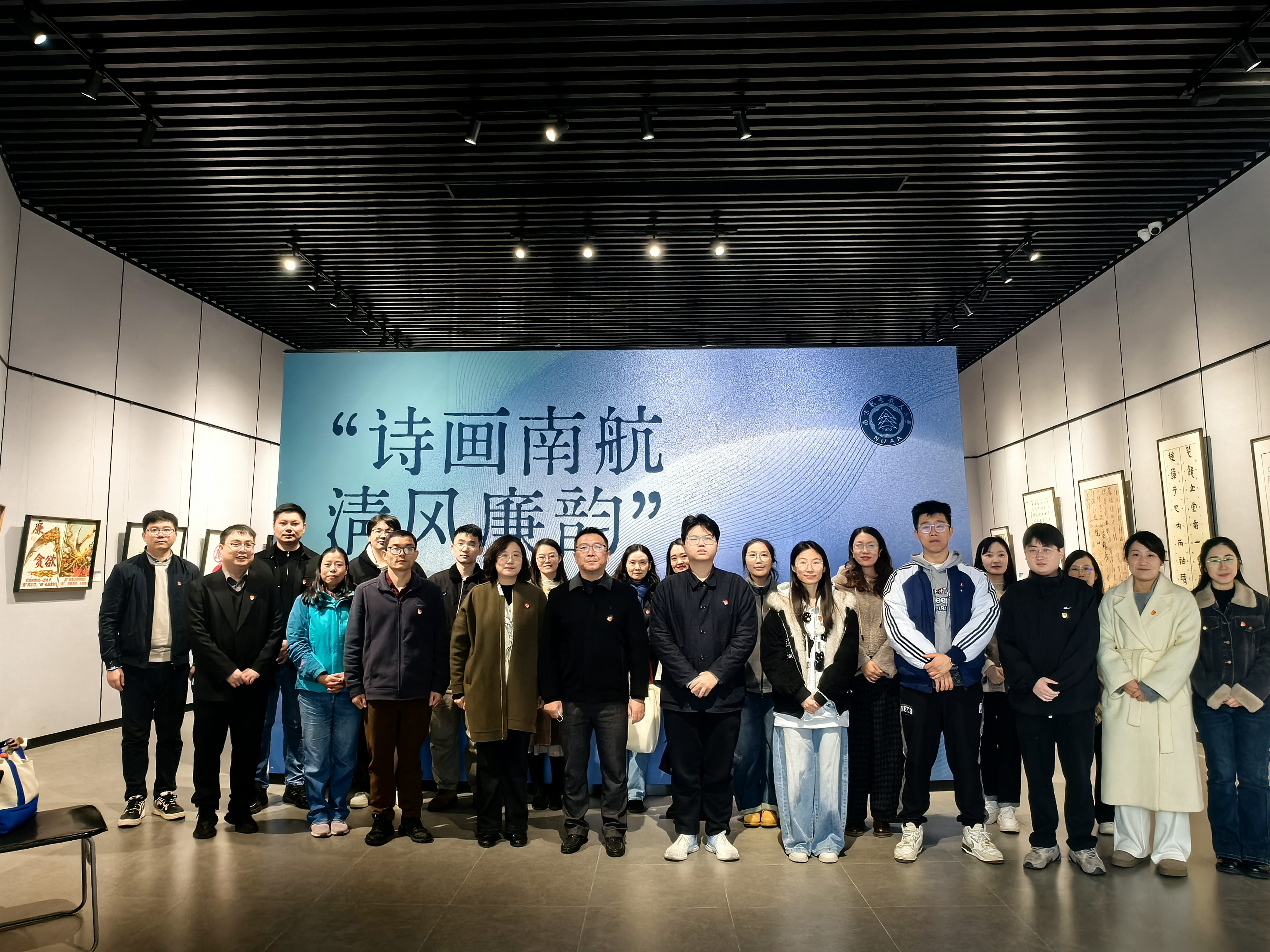 党课结束后,双方党员共同参观了砚湖美术馆展出的“诗画南航 清风廉韵”主题画展。本次画展展出的作品均由我校师生创作,作品以书画艺术为载体,将校园景致、人文风貌与廉洁文化主题巧妙融合,让全体党员感受校园的廉韵清风。