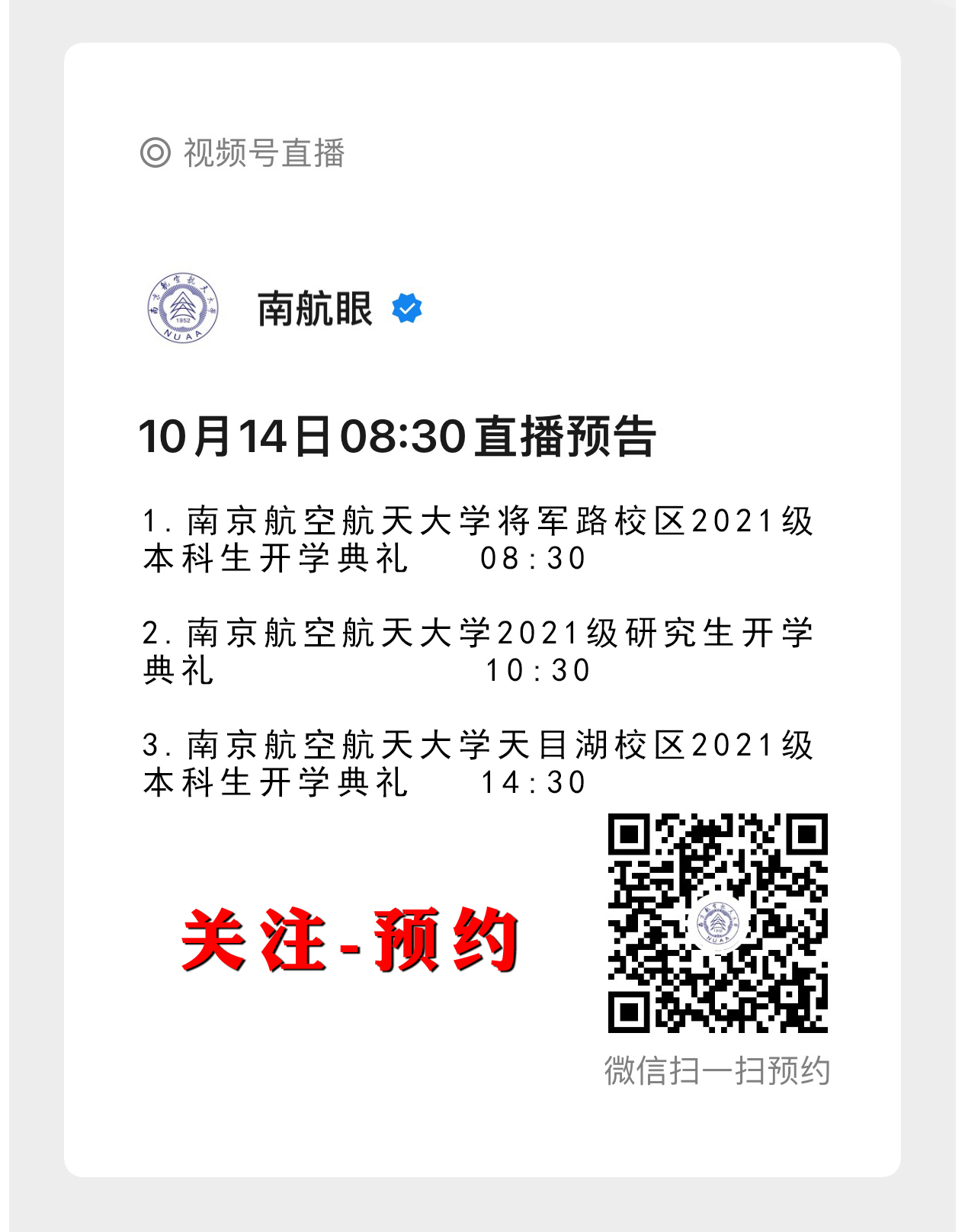 10月14日(周四)10:30,将军路校区西操场。议程见附件1。在线观看开学典礼的学生和家长请扫描以下二维码: