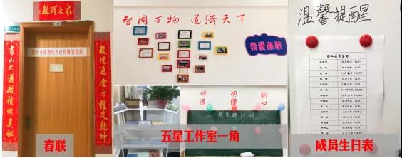 导师对团队每个成员都非常关心和熟悉,彼此之间也经常一起运动、踏青、聚餐,真的就像一家人。赵老师早上8点钟准时到学院,到的第一件事,就是来工作室看看我们,问问科研进展如何,有没有什么困难。在工作室一张特别又暖心的表,上面记录着每位同学的生日,导师都会来和大家一起过,切蛋糕、唱生日歌。原创春联、文化墙在工作室比比皆是。团队所在工作室也获评学校“五星”研究生工作室。在学生遇到困难的时候,赵老师也总是第一个伸出援手,细心询问情况,开导学生。在今年第37个教师节来临之际,团队共同绘制了特别板书,由衷地表达对导师辛勤付出的感激之情。