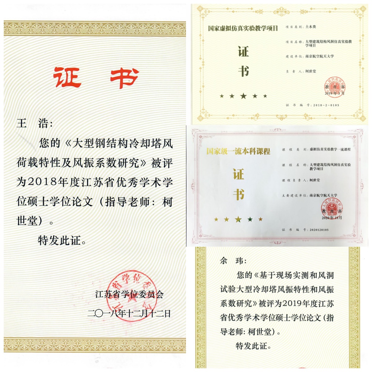 “用心的教学”总会得到回响,柯世堂教授指导的第一届和第二届研究生王浩、余玮两人连续获得2018年和2019年江苏省优秀硕士学位论文,杜凌云等获得5项江苏省级研究生创新项目和10项校级研究生创新基金;12名研究生获得国家奖学金,王浩获2017年南京航空航天大学校研究生十大学术之星、2018年南京航空航天大学校研究生十佳研究生。