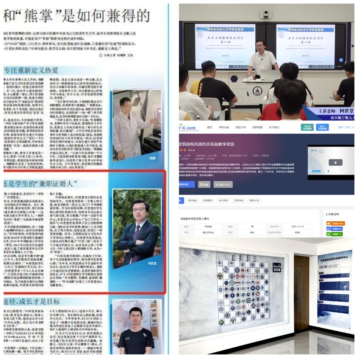柯老师在《新华日报》受访中说过:“科研是教学的养料,但做好了科研,不代表能做好教学,因为教学是要用心的。”正是这个信念不断支撑着他的教育生涯,他坚持以学生为中心,以本为本,课程育人,面向民航强国战略,围绕机场工程及其防灾减灾高新技术领域,开设了《机场工程》《土木工程防灾减灾概论》《大型建筑结构风洞仿真实验教学》等国家级和省部级精品课程,并主编出版了普通教育“十三五”规划教材和第一批国家级一流本科课程配套教材《结构风工程概论》;面对南航物理风洞难以稳定用于教学用途的困境,他集中全部力量主持设计了全国土木工程专业风工程方向唯一的国家级虚拟仿真实验教学中心,使学生充分了解本行业土木工程结构抗风新技术与发展趋势。