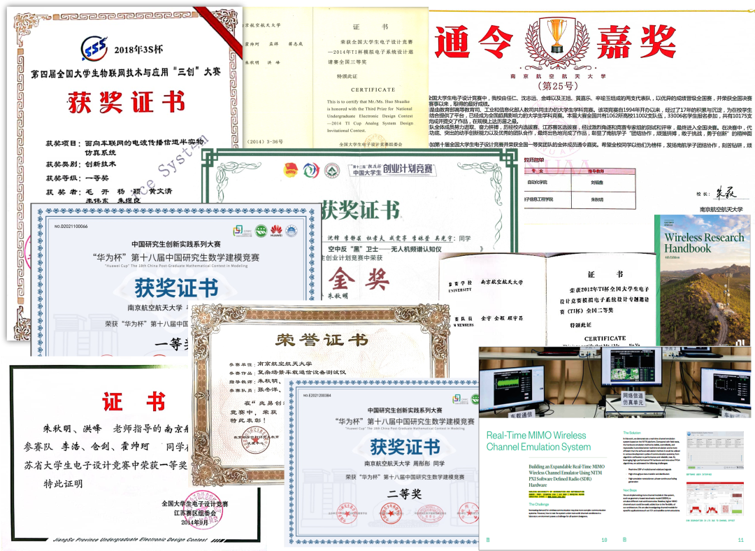 朱老师指导学生获得国电赛一等奖、挑战杯一等奖、创青春全国金奖、3S杯全国一等奖、研究生数学建模竞赛全国一等奖等国家/省部级竞赛奖项40项。此外,指导研究生作品参展通信领域顶级学术会议IEEE ICC 2019,并被2020年5G SDR代表性测试案例收录(国内仅2项);指导研究生论文入选人工智能CCF A类国际学术会议INFOCOM 2022。