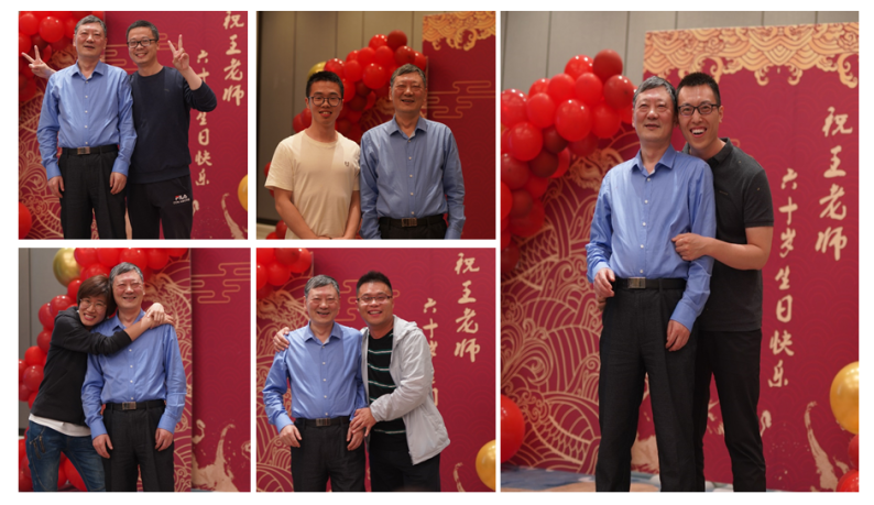 王老师既是老师,也是学生们的知心的朋友与大家长,虽年近花甲,但却与古板和严厉毫不沾边。2021年,王老师60大寿当日,近60名已经毕业的学生归来为王老师庆生,在生日宴前的座谈会上,大家都讲述了自己与王老师的一段故事。一位已毕业多年的师兄说到,毕业时他想在南京安家,但却没钱付房子的首付,于是找到了王老师,王老师没有丝毫犹豫便将自己的银行卡和密码给了他,如果没有王老师,可能都没有他现在的家庭。大家每每谈到王老师,都是对他的尊敬赞美感恩。在这个大家长的庇护下,课题组的学生们都在茁壮成长,闯出自己的一片天地之后,最终又回归到温馨的大家庭。
