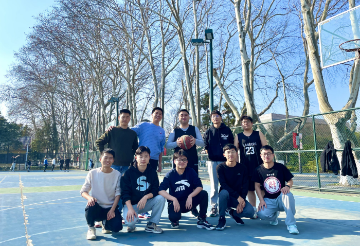 “哐”是热爱,“唰”是欢喜。在枯燥科研之时,张老师总会找学生们约球。很难想象,在学术上要求严谨的张明教授,在法桐遍地的明故宫球场,身着白色1号变成了耀眼的得分后卫。