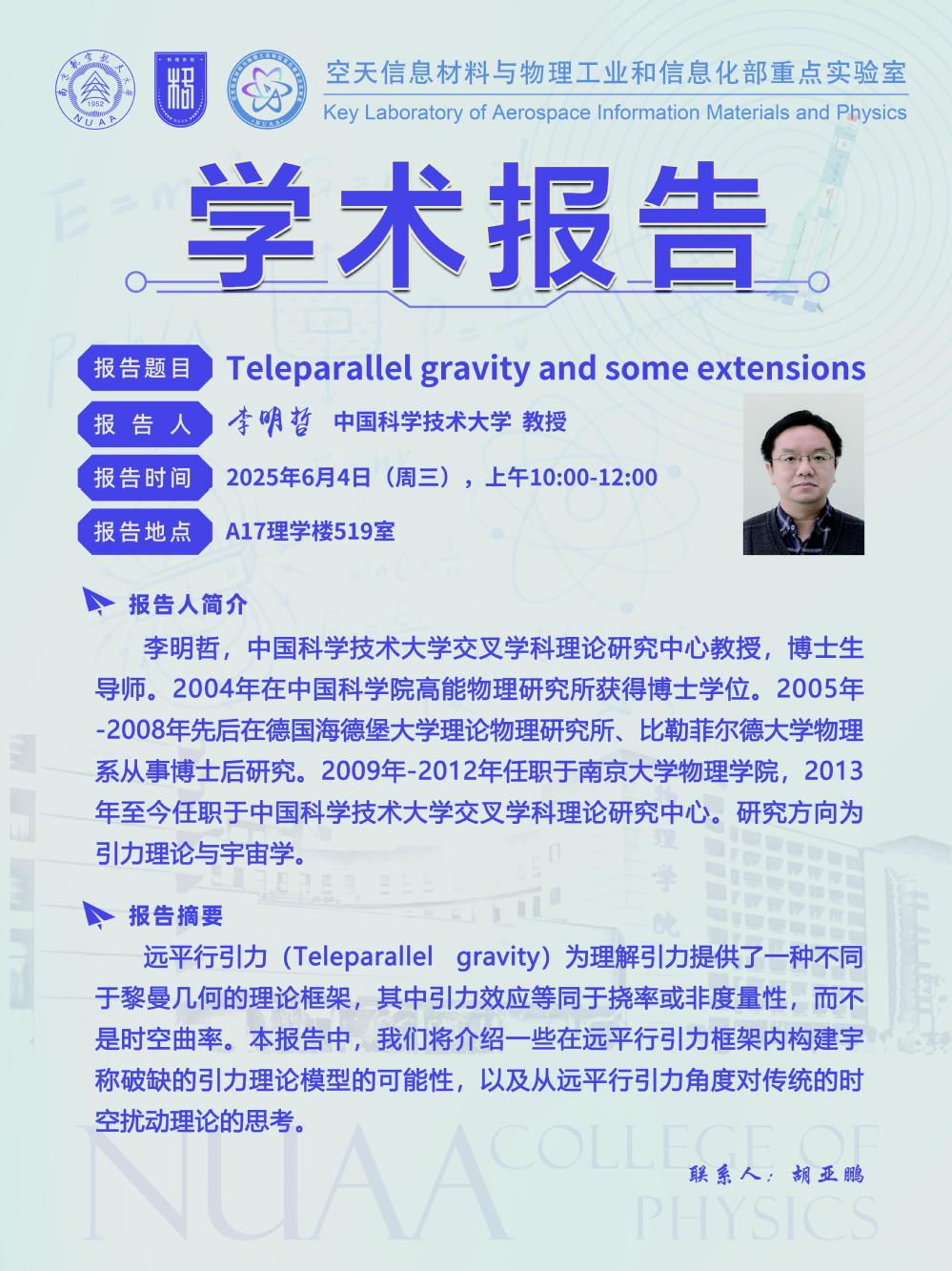 报告题目:Teleparallel gravity and some extensions