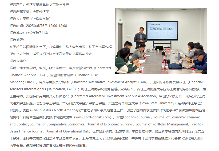 报告题目:经济学高质量论文写作与发表