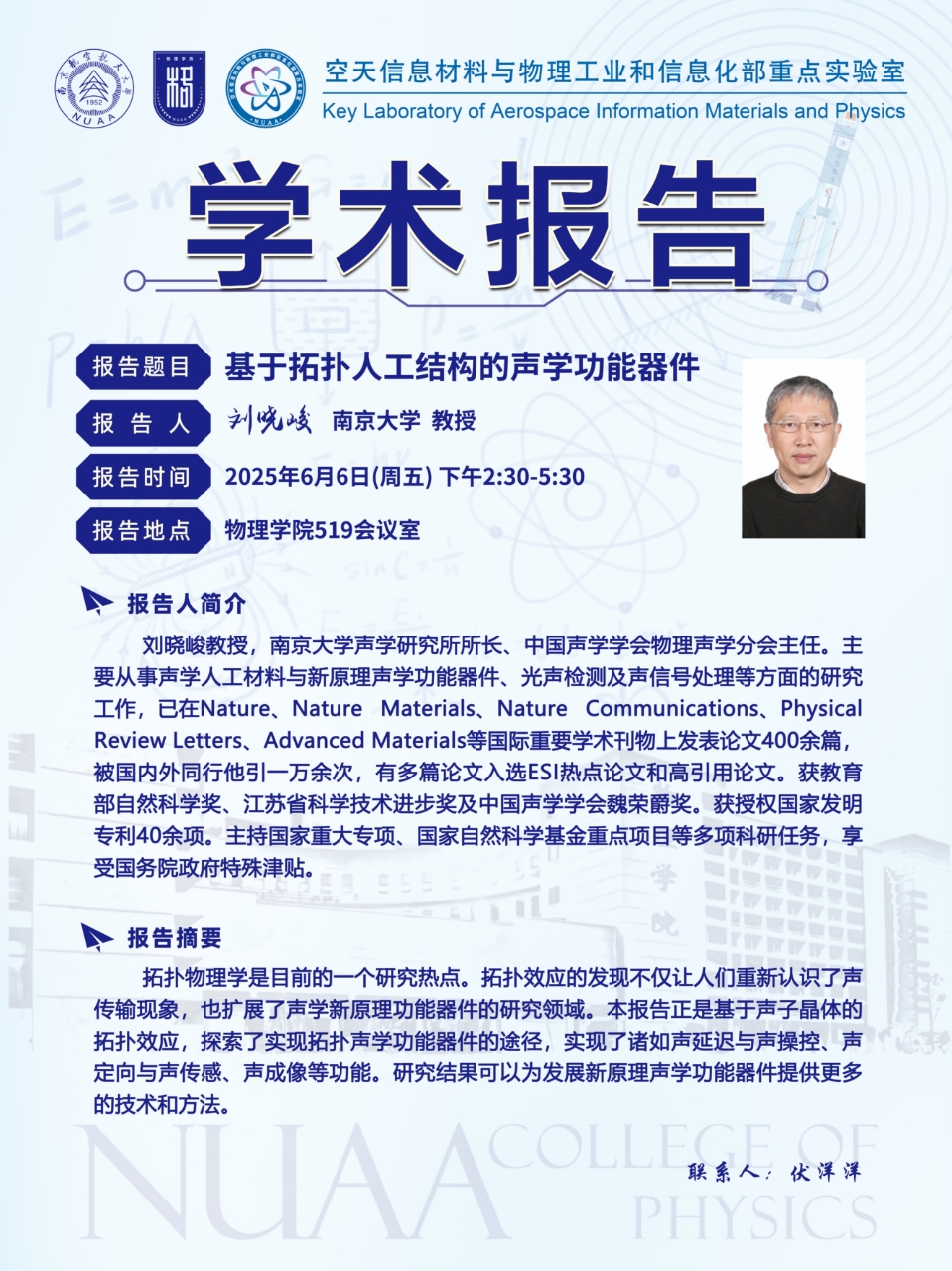 报告题目:基于拓扑人工结构的声学功能器件