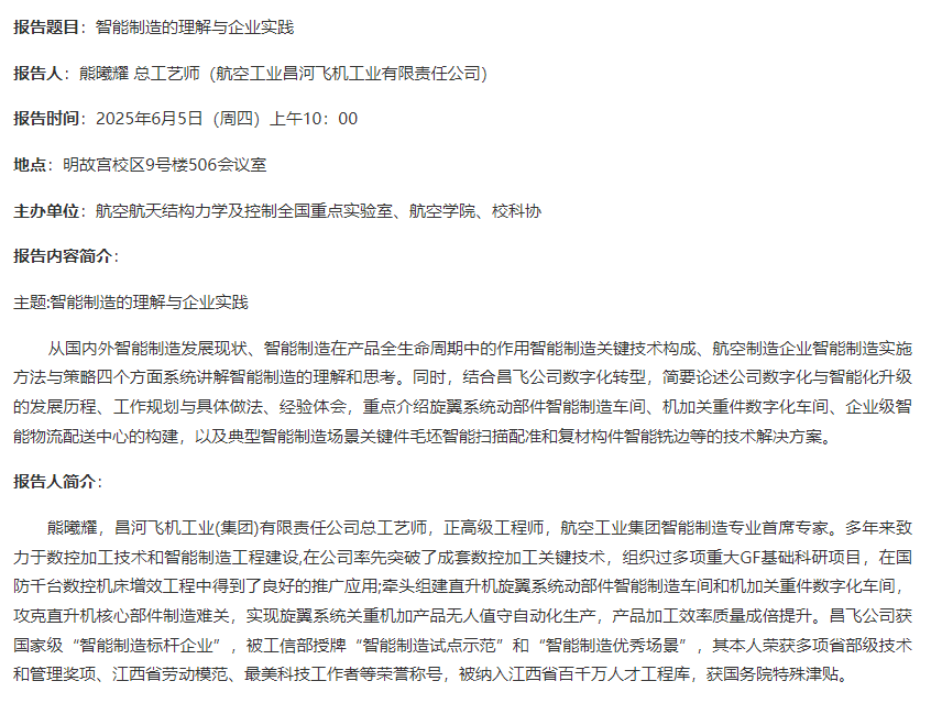 报告人:熊曦耀 总工艺师(航空工业昌河飞机工业有限责任公司)