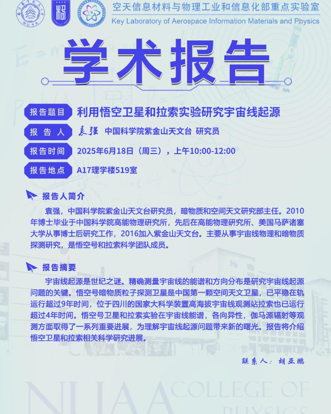 报告题目: 利用悟空卫星和拉索实验研究宇宙线起源