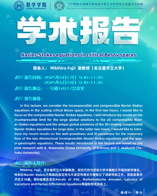 报告题目:Navier-Stokes equations in critical Besov spaces