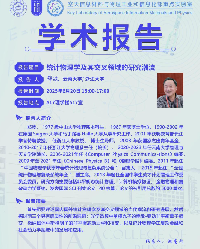 报告题目: 统计物理学及其交叉领域的研究潮流