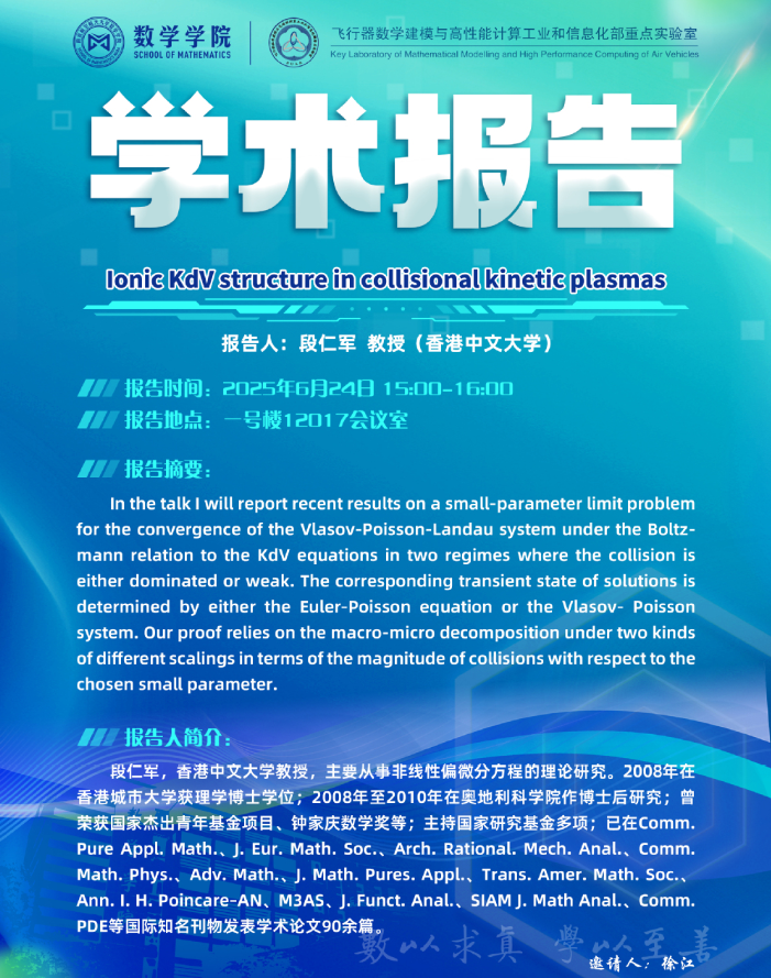 报告题目:Ionic KdV structure in collisional kinetic plasmas