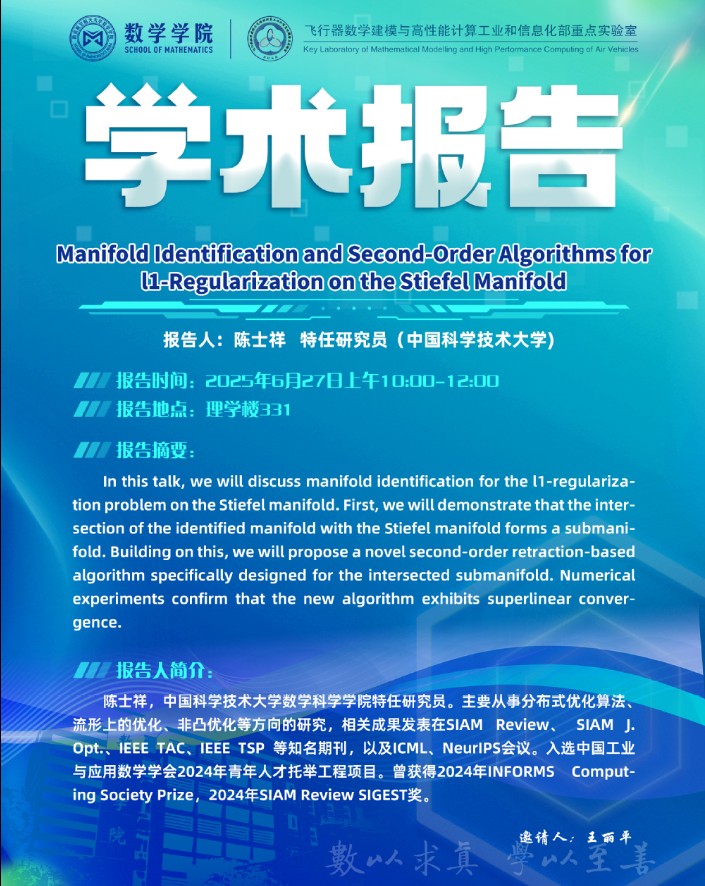 报告题目:Manifold Identification and Second-Order Alogorithms for L1-Regulariztion on the Stiefel Manifold