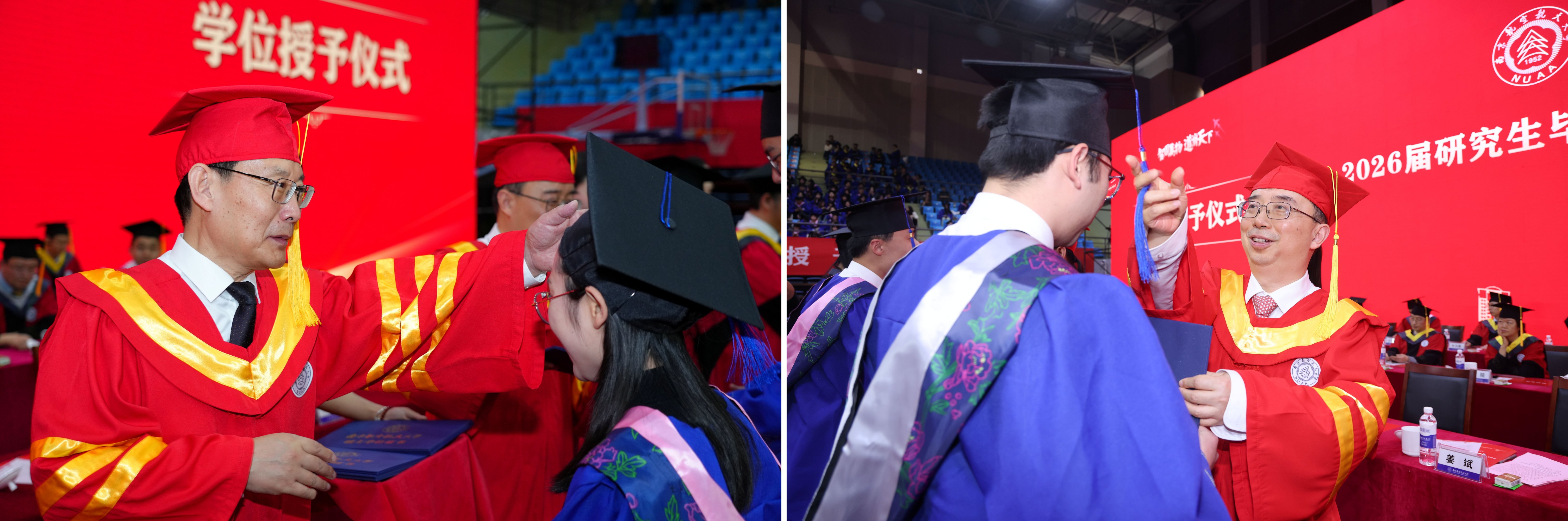 在研究生导师的悉心指导下,2026届毕业生勤奋刻苦、勇攀高峰,在专业学习、科学研究、工程实践等方面取得了出色的成果,涌现出一批品学兼优、全面发展的优秀研究生。738名同学获评“优秀毕业研究生”称号。在热烈的掌声中,主席台前排领导为优秀毕业研究生代表颁发荣誉证书。