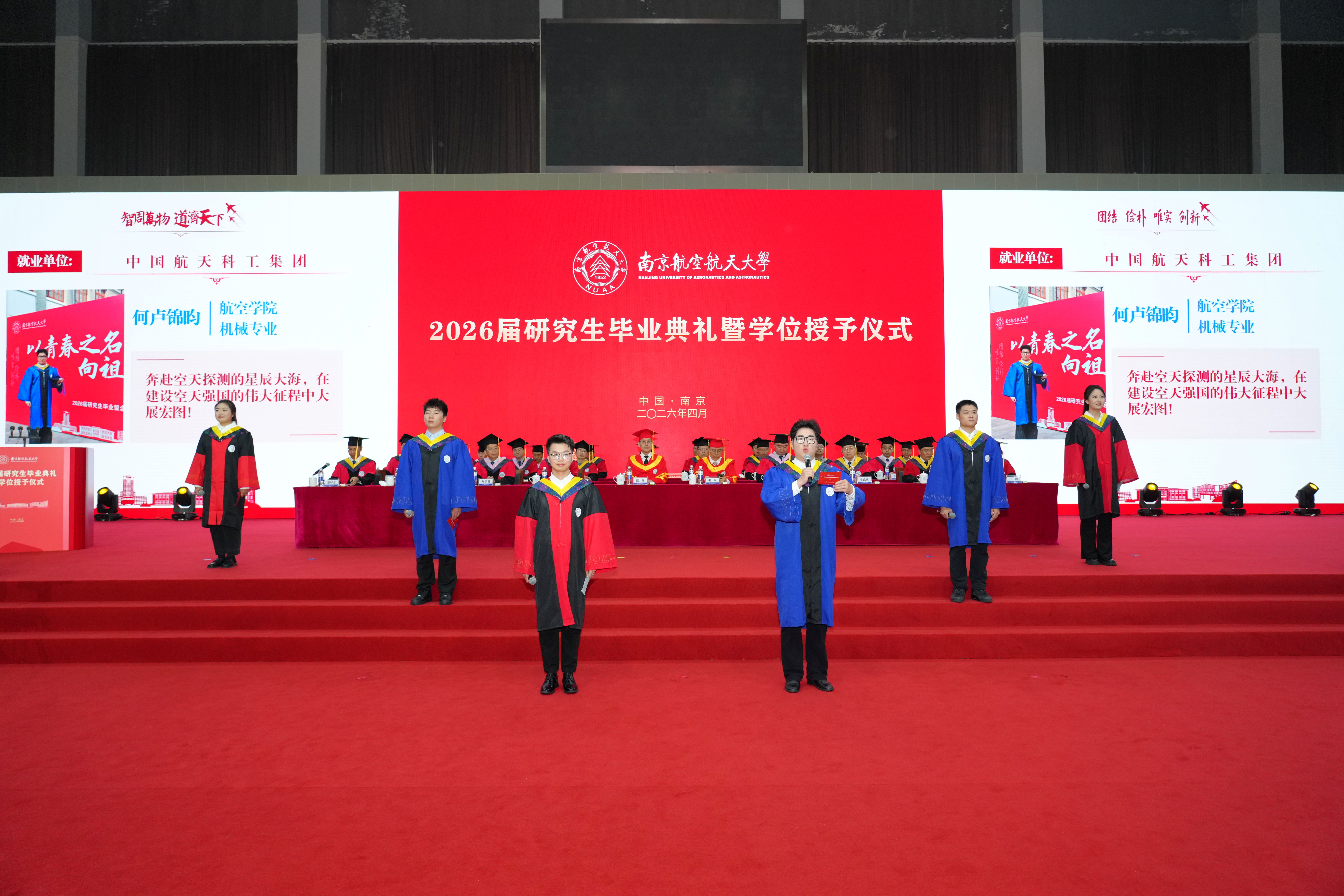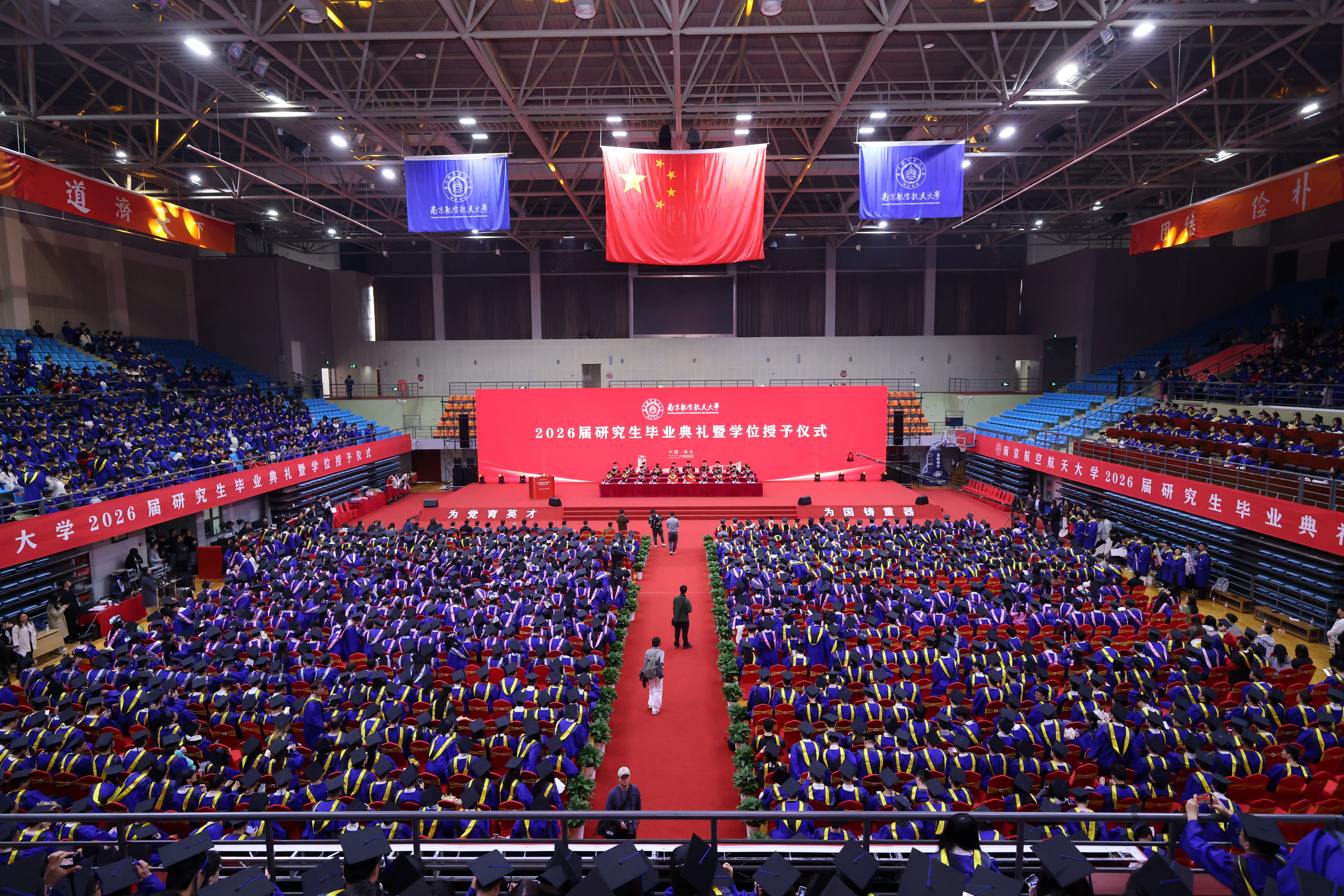 4月2日下午,我校2026届研究生毕业典礼暨学位授予仪式在将军路校区体育馆举行。校领导、校学位评定委员会成员、各学院及相关职能部门负责同志、导师代表出席典礼,与2026届全体毕业研究生共同见证难忘时刻。校长助理潘时龙主持典礼。本次毕业典礼暨学位授予仪式还通过央视频等平台进行了全球网络直播。