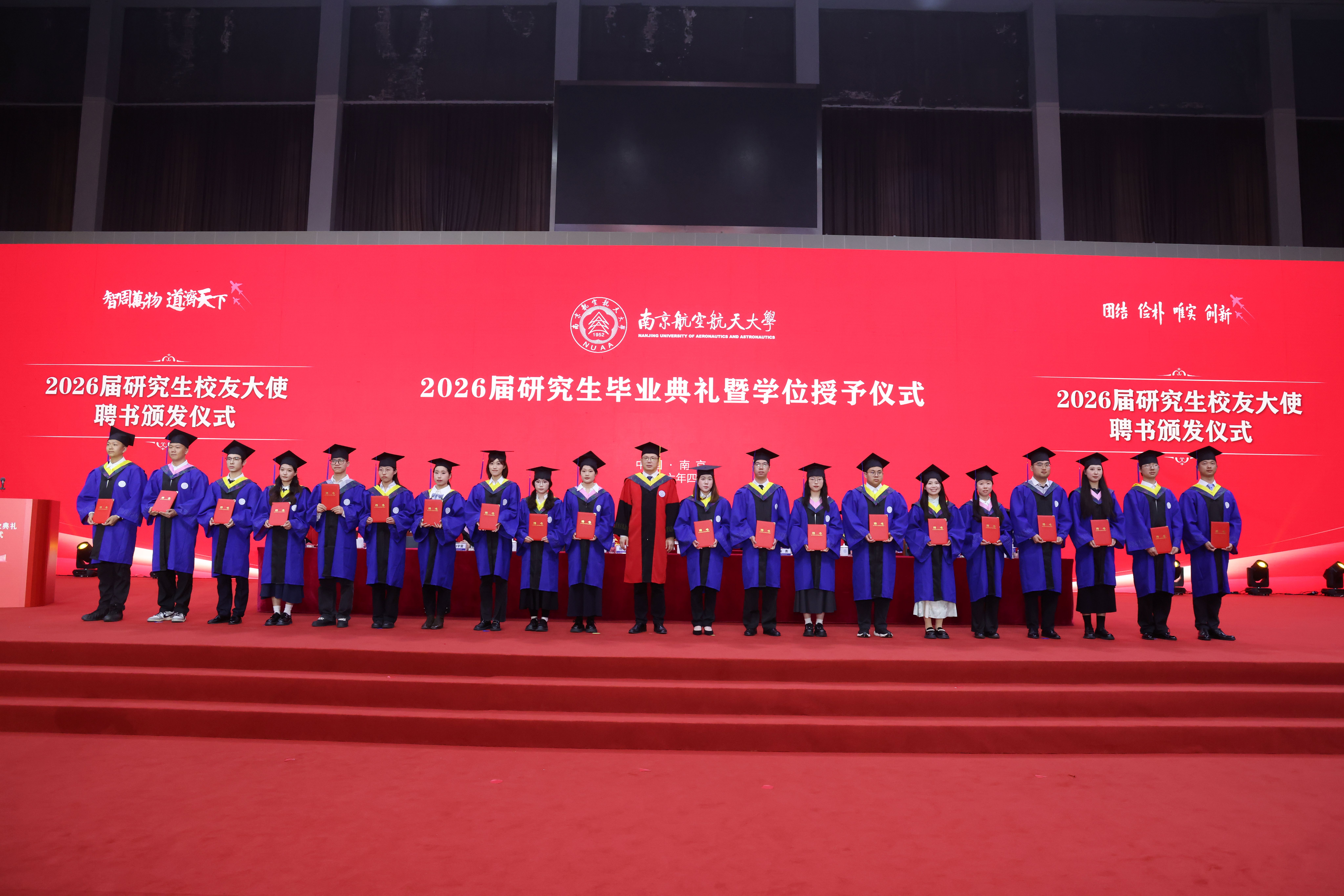 副校长张启钱为2026届研究生校友大使颁发了聘书。作为南航校友的代表,校友大使们将热情、认真、负责地担负起这项光荣的任务,做好与校友、母院、母校的桥梁与纽带。