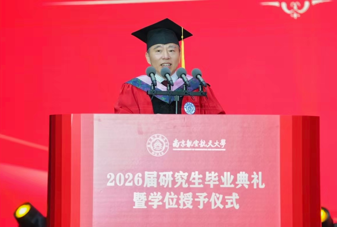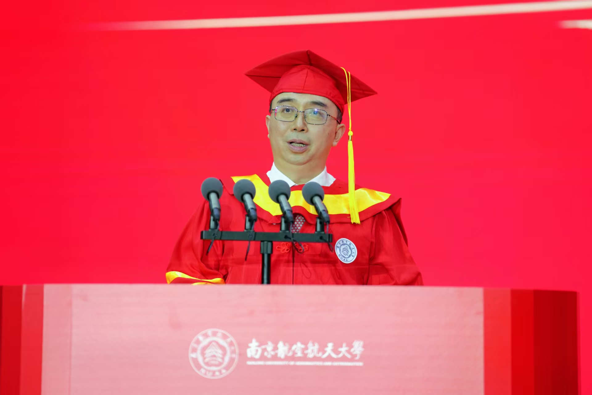 他希望毕业生们将母校的历史、传统、精神、文化内化为今后前行的精神烙印,奔赴山海,不负热爱,征途漫漫,无畏前行,为强国建设、民族复兴贡献南航人更大的智慧和力量!